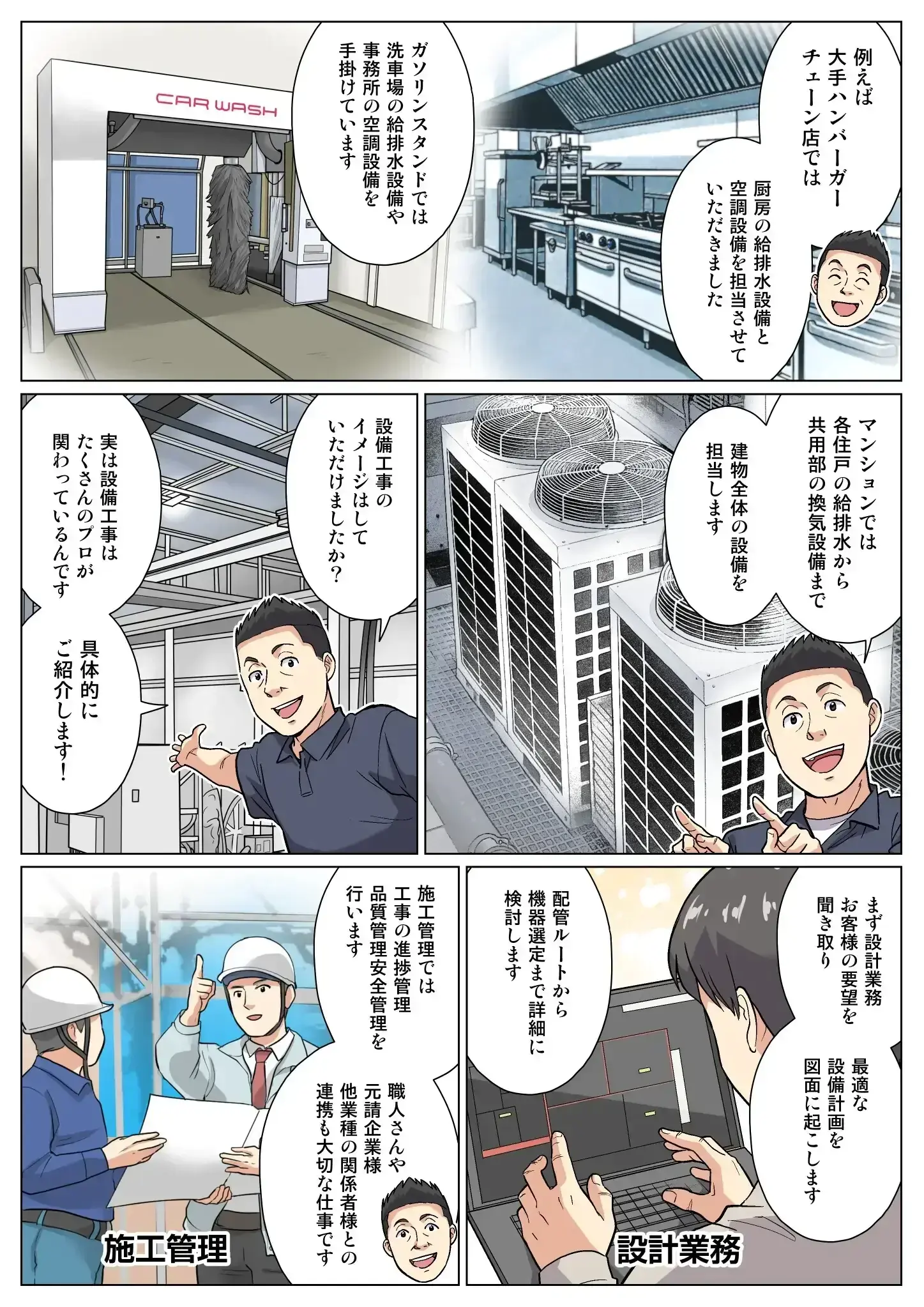 様々な現場を支えるために、設計・施工管理・現場作業という専門性の異なる職種が連携して進めています。